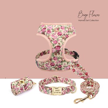 طوق كلب مخصص منقوش يدويًا بنمط زهور رائع ولون بيج، تصميم عصري لجميع المواسم