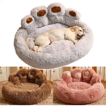 Cozy Winter Paw Print Dog-Cubierta extraíble Lavable a mano Felpa Interior y exterior Mediano Grande Cama para mascotas (Nylon)