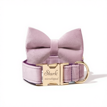 Ensemble en velours lavande fait main avec nœud papillon personnalisé pour chiot, collier et laisse fantaisie pour chien, nœud papillon pour cadeau de mariage