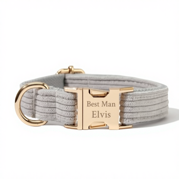 Ensemble de chiot en velours côtelé gris luxueux fait à la main Collier, laisse et nœud papillon personnalisés pour chien - Cadeau de mariage
