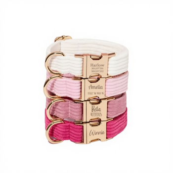 Laisse pour chiot en velours côtelé rose pâle avec étiquette personnalisée en plastique et nœud pour cadeau de mariage, collier pour chien avec gravure de nom gratuite