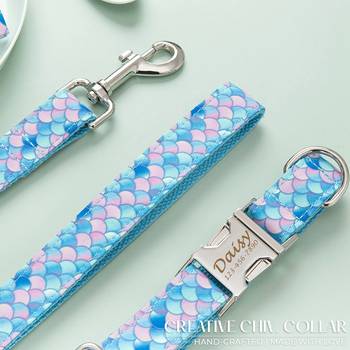 Collier pour chien moderne en cuir de vache, à libération rapide, rembourré, imprimé sirène, personnalisé, mignon, collier pour chien, cadeau pour les jours de chien