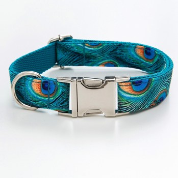 다음날 배송 | 우아한 새틴 개인 맞춤 각인 수제 공작새 강아지 목걸이