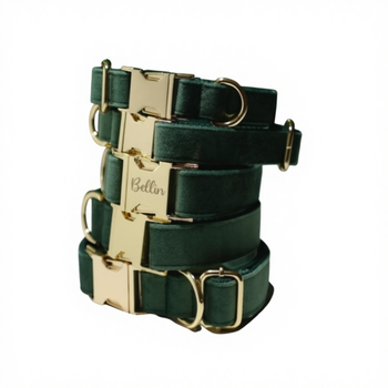 Bộ dây dẫn và vòng cổ chó bằng da và nhựa chiến thuật hiện đại Green Veet, kèm nơ và trang trí đinh tán, khắc tên miễn phí