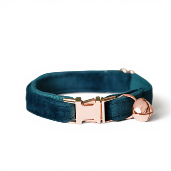 Bộ dây dẫn, nơ và vòng cổ mèo chó nhỏ bằng nhung màu xanh biển nhạt, có khắc tên tùy chỉnh, kèm chuông vàng miễn phí dành cho mèo con và chó con